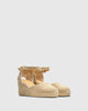 Espadrilla Carina in lino metallizzato con chiusura a nastri soletta imbottita e zeppa in juta e lurex di 9 cm.