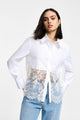 Camicia in denim con bande laterali Questa camicia è la compagna perfetta per la donna metropolitana in cerca di stile e comfort. Le maniche a 3/4 e il colletto classico donano un tocco di eleganza mentre le rigature lungo le spalle aggiungono un tocco audace e vivace. Perfetta per le avventure quotidiane si abbina facilmente a qualsiasi outfit dando sicurezza e versatilità. 98%CO 2%EA